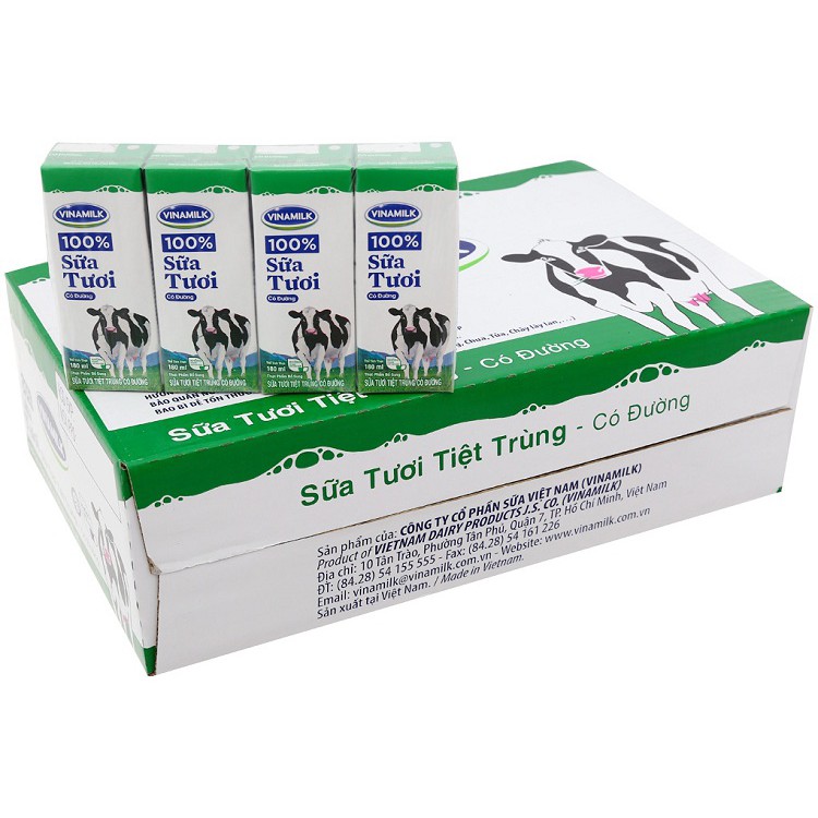 Thùng sữa tươi tiệt trùng Vinamilk Có đường hộp 180ml